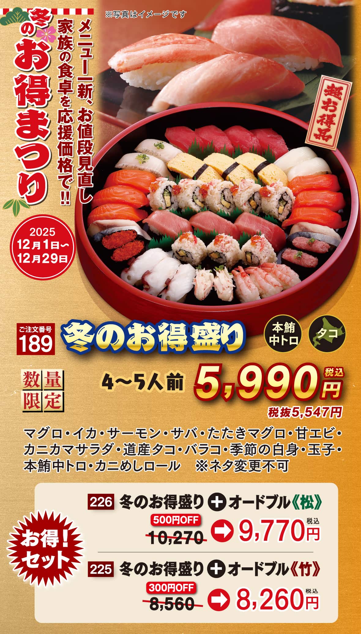 年末年始の特別なお寿司 ご予約承り中!(販売期間:2025年12月30日~2026年1月5日)