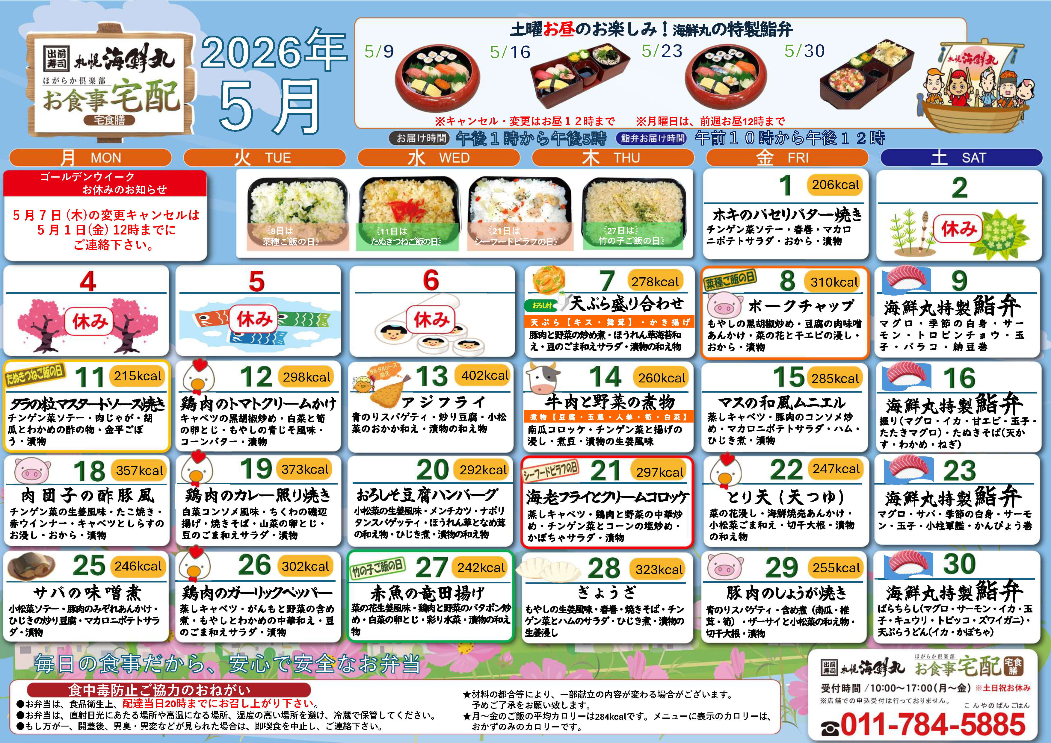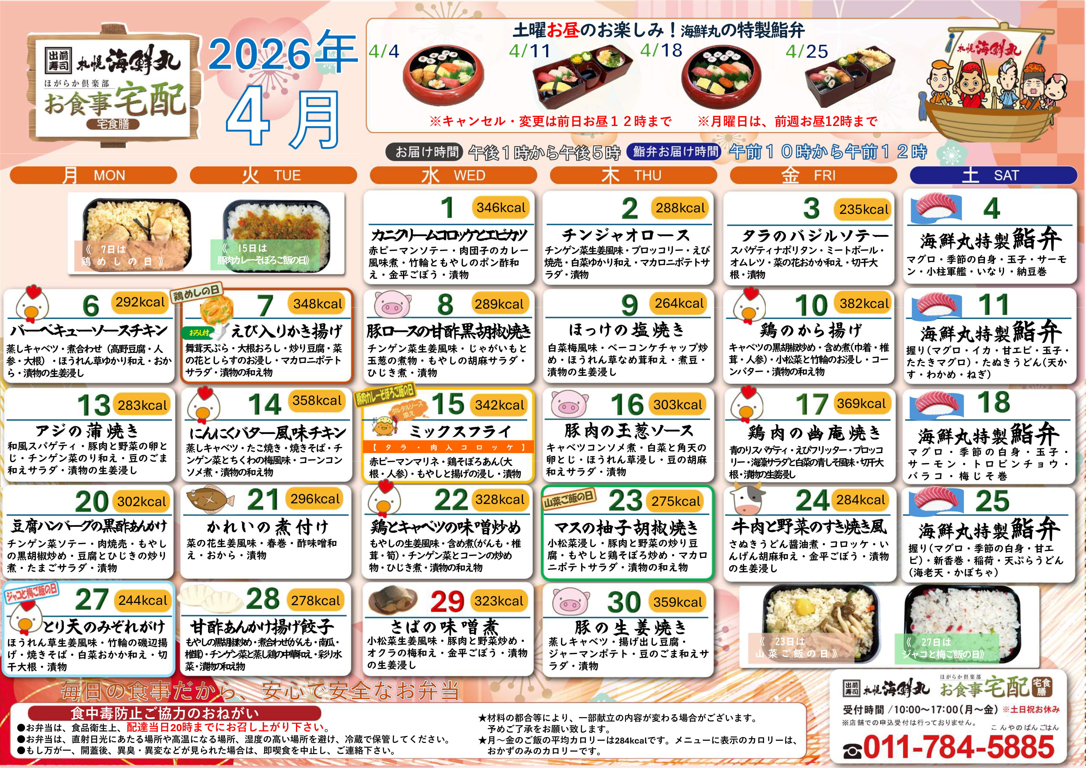 月曜日~金曜日まで毎日日替わりでお届けします。ご希望で変更も可能です。